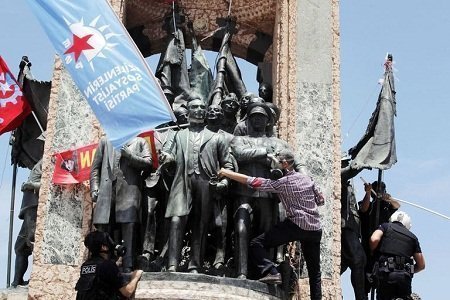 Alors qu'une rencontre déjà jugée factice entre le Premier ministre Recep Tayyip Erdogan et des «représentants» de la contestation se tient à Ankara, M. Erdogan a accueilli les 11 membres de la délégation, composée principalement d'artistes, d'universitaires et d'architectes, au siège de son Parti de la justice et du développement (AKP). Solidarité Taksim, la plateforme de 116 partis et associations qui anime le mouvement pour la préservation du parc Gezi à Istanbul, menacé par un projet d'aménagement urbain et d'où est partie la contestation, a dénoncé mercredi cette réunion à laquelle elle n'a pas été conviée. Au matin du treizième jour de la fronde contre le chef du gouvernement, la célèbre place de la mégapole turque était étroitement contrôlée par les forces de l'ordre, disposées derrière des canons à eau devant chacune des rues environnantes. Drapeaux, banderoles, barricades, voitures brûlées, pavés, cartouches de gaz lacrymogènes, tous les signes extérieurs de la contestation et des affrontements intenses qui s'y sont déroulés jusqu'au petit matin ont été soigneusement effacés. Les forces de sécurité ont repris mardi matin à la surprise générale la place Taksim, cédée le 1er juin aux manifestants qui en ont fait le bastion de leur mouvement. De violentes échauffourées y ont opposé pendant près de vingt heures la police à des groupes de jeunes casqués et armés de pierres et de cocktails Molotov.