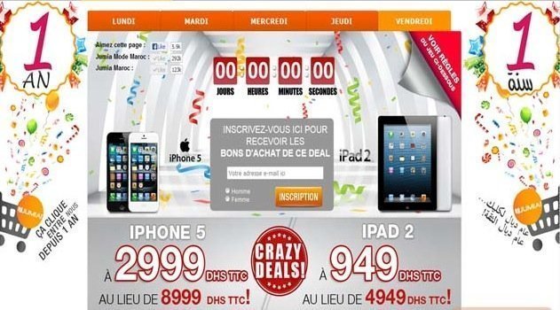 Vendredi 28 juin dernier, le site d’e-commerce Jumia soufflait son 1er anniversaire avec un jeu concours pour «gagner un Iphone et un Ipad», annonçait sa page Facebook. Pas étonnant donc, que des milliers de Marocains aient rejoint le site, attendant impatiemment la fin du compte à rebours du jeu pour pouvoir tenter leur chance. Mais au moment précis où le compteur a affiché zéro secondes, les internautes qui voulaient participer ont vu s’afficher une page d’erreur avant d’être redirigés vers une page annonçant que le site Jumia était «en cours de maintenance».