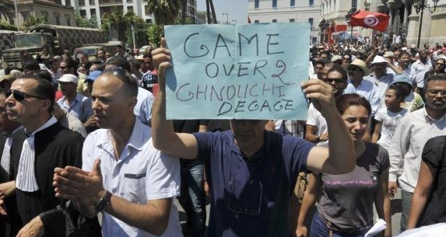 Vendredi, des centaines de personnes ont manifesté à Tunis pour réclamer la chute du gouvernement dirigé par Ennahda qu'ils désignent comme responsable de la mort de l'opposant.Des manifestations ont eu lieu en province, faisant un mort à Gafsa, où la police a dispersé au gaz lacrymogènes une marche nocturne simulant des funérailles de l'opposant assassiné. Mohamed Moufti, 45 ans, a été mortellement blessé dans la nuit de vendredi à samedi par une bombe lacrymogène qui l'a atteint à la tête, quand les manifestants ont tenté d'envahir le siège de la préfecture, selon un journaliste de l'AFP.