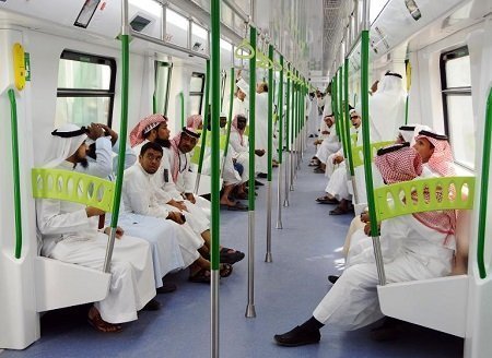 Mais il n'a pas précisé si le métro serait accessible aux femmes seules. Actuellement, elles ne peuvent pas conduire et elles ne sont autorisées à emprunter les rares bus qu'en compagnie d'un proche. Les femmes désirant se déplacer en voiture doivent être accompagnées d'un membre proche de leur famille ou d'un chauffeur, ce qui ajoute aux problèmes de la circulation dans la capitale. L'Arabie saoudite, riche pays pétrolier, est engagée, à coup de milliards de dollars, dans divers projets pour développer et moderniser ses infrastructures dans le domaine du transport, notamment ferroviaire. Une ligne de chemin de fer a été ainsi mise en service en 2010 à La Mecque pour permettre aux pèlerins de se déplacer entre cette ville et les autres Lieux saints de l'islam à Mina, Mouzdalifah et Arafat. Cette ligne, baptisée Mashair (Lieux saints), a coûté 1,8 milliard de dollars.