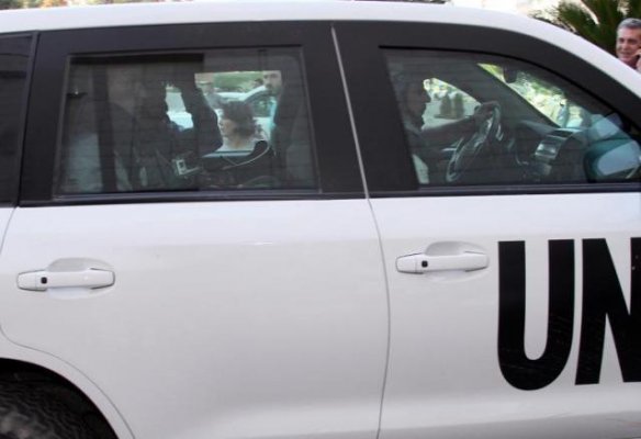Le photographe a vu les inspecteurs, qui sont basés à Damas, partir à bord d'un convoi de six voitures de l'ONU. On ignore vers quel site ils se dirigeaient.