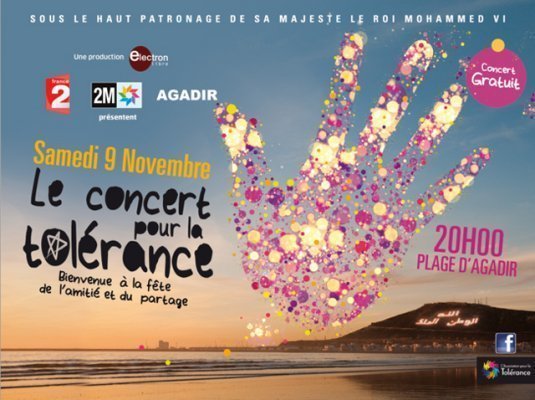 Le Concert pour la tolérance est un événement produit par Electron Libre Production et la chaîne publique française France 2, en partenariat avec 2M. Il est co-organisé par l'Association pour la tolérance, basée à Agadir et regroupant les représentants des partenaires officiels marocains de la manifestation (collectivité locale, 2M, RAM, ONMT, CRT d'Agadir).