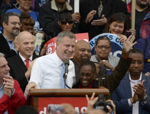Tous les sondages indiquent que cet Italo-américain, marié à une Afro-américaine, qui a promis un changement radical, va écraser son adversaire républicain Joseph Lhota, avec plus de 40 points d'avance. La plus grande ville américaine (8,3 millions d'habitants) compte six fois plus d'électeurs démocrates (3,1 millions) que de républicains (491.000), mais n'a plus élu de maire démocrate depuis David Dinkins en 1989. Après Rudolph Giuliani (1994-2001) et le milliardaire Michael Bloomberg (2002-2013), Bill de Blasio, qui a mis sa femme et leurs deux enfants métis au cœur de sa campagne, s'est positionné comme un « progressiste, fier de l'être », défenseur des classes moyennes, des familles et des minorités. Il a dénoncé jour après jour les inégalités à New York, la ville qui compte le plus de milliardaires au monde mais dont 21% de la population vit en-dessous du seuil de pauvreté (30.944 dollars annuels pour une famille de 4, selon l'indice de la mairie).
