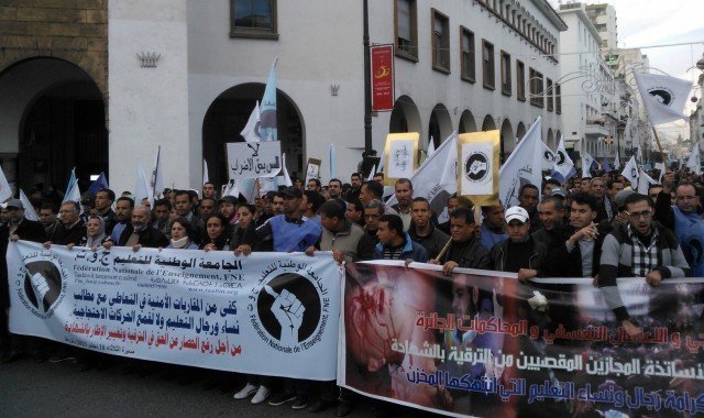 Lors d’une marche qui vu défiler un cortège d’enseignants en colère, la fédération nationale de l’enseignement réclame la révision des promotions de 5.000 enseignants titulaires d’une licence et la modification des statuts des titulaires d’un master.