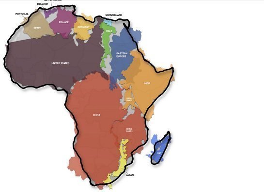 Selon le site Rue 89, certains lecteurs sceptiques ont décidé de vérifier les chiffres et comparer les superficies avant de se résoudre à la véracité de cette analyse géographique (l’Afrique : 30 millions de km² ; Chine et Etats-Unis : 20 millions de km²). Si cette carte permet en un sens de bousculer certaines idées reçues, elle souligne également les potentialités (inexploitées ?) démographiques, industrielles, économiques etc. d’un continent africain plein de promesses, et pourtant gangréné par les violences, les guerres et les perpétuelles instabilités politiques.