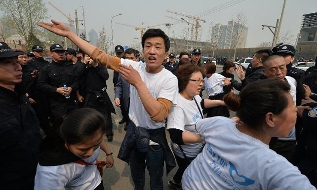 Quelque 200 proches des 153 passagers chinois se sont rassemblés devant l'ambassade malaisienne, protégée par des centaines de policiers. « Mon fils, mon fils, rendez-moi mon fils », s'est écrié un père éploré, entouré d'autres personnes qui brandissaient le poing en exigeant de rencontrer des responsables malaisiens.