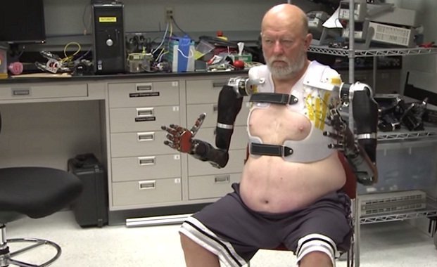 Grâce à une chirurgie et le potentiel de la robotique, Les Baugh, un Américain du Colorado amputé des deux bras, devient la première personne à contrôler des bras bioniques apposés sur ses épaules, par la pensée.