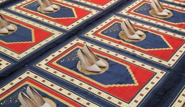 28 tapis de prières identiques, alignés et découpés en leurs centres pour accueillir 28 paires d’escarpins dorés. Cette œuvre iconique intitulée «Silence» et signée de la plasticienne franco-algérienne Zoulikha Bouabdellah ne sera désormais plus présentée en Haut-de-Seine, en France, dans l’exposition «Femina ou la réappropriation des modèles », à la demande de l’artiste.