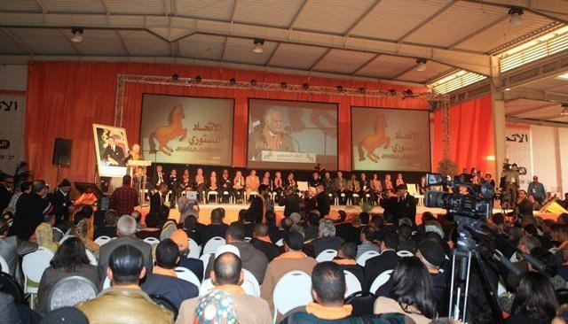 Sept candidats sont en course pour prendre la tête du parti créé par Maâti Bouâbid en 1984: Anouar Zyne, Driss Radi, Mohamed Sajid, Mohamed M’hammedi Alaoui, Bouchra Barrijal, Lahbib Dekkak et Mohamed Bensaïdi. Mohamed M’hammedi Alaoui est le seul rescapé de la première génération, celle du fondateur.
