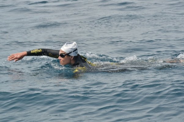 Seule dans l’eau pendant toute la durée du trajet, elle était seulement suivie par un bateau pilote et une équipe d’organisation.