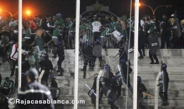 Au cours de la dernière demi heure du match qui s’est déroulé à Sétif, différents témoins cités par les dirigeants du Raja, affirment que le public marocain a été violenté par la police algérienne. Des photos diffusées entre autres par le Raja ainsi que sur les réseaux sociaux, montrent des policiers casqués et armés de gourdins, charger les supporters casablancais… dans les gradins.