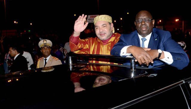 A son arrivée à l'aéroport international Léopold Sédar Senghor, le Roi a été accueilli par le président sénégalais, Macky Sall.