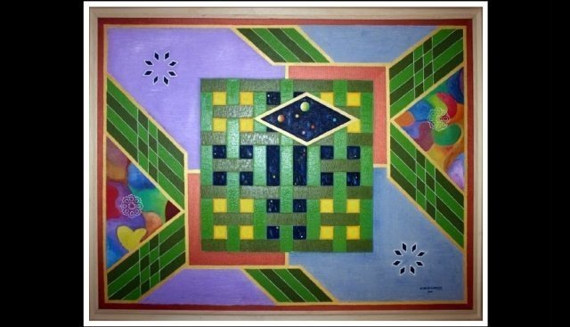 Avec cet ex-directeur du complexe culturel Moulay Rachid, les toiles partent à la rencontre du patrimoine visuel marocain, de l’esthétique arabo-andalouse et de ses motifs géométriques. Inspirés du zellige, de l’arabesque, de la miniature, de la broderie et des arts visuels du patrimoine, les œuvres de ce mordu de la peinture ne font pas appel à la mémoire visuelle de manière automatique, mais reproduisent ses icones et son vocabulaire visuel, conformément à son imaginaire esthétique propre.
