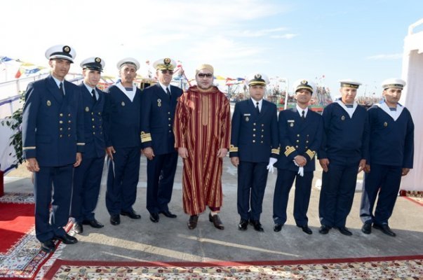Le Souverain a ensuite passé en revue un détachement de la Marine royale qui rendait les honneurs, avant d'être salué par le vice-amiral Mohamed Laghmari, inspecteur de la Marine royale, le contre-amiral, commandant le secteur maritime de Dakhla, le wali de la région Dakhla - Oud Eddahab, gouverneur de la province de Oued Eddahab, le directeur du port de Dakhla, le directeur d'exploitation de "Marsa Maroc" - Dakhla et le commandant du port de Dakhla.