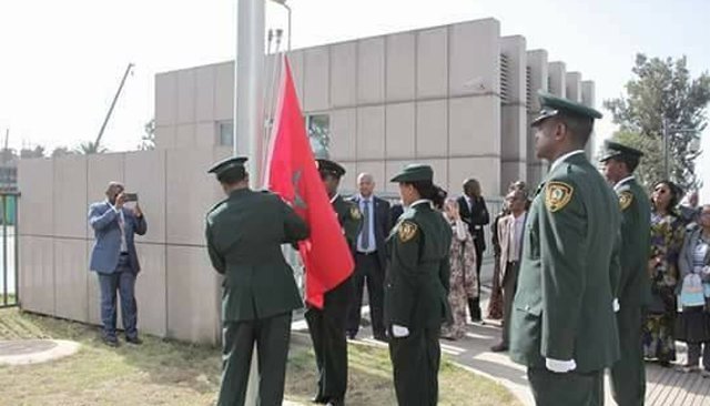 The national Flag of the Kingdom of Morocco raised today as the 55th Member State of @_AfricanUnion pic.twitter.com/rpPnfHZ9md