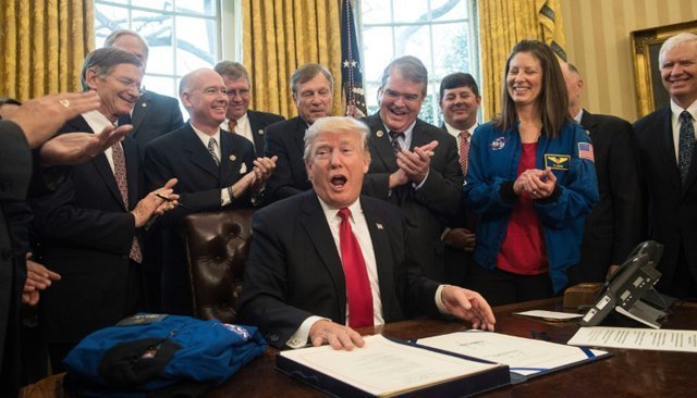 Cette loi "réaffirme notre engagement sur la mission centrale de la Nasa: l'exploration spatiale humaine", a souligné le président américain en signant le texte en présence de nombreux élus dont deux de ses ex-rivaux à la primaire républicaine: Ted Cruz (Texas) et Marco Rubio (Floride).