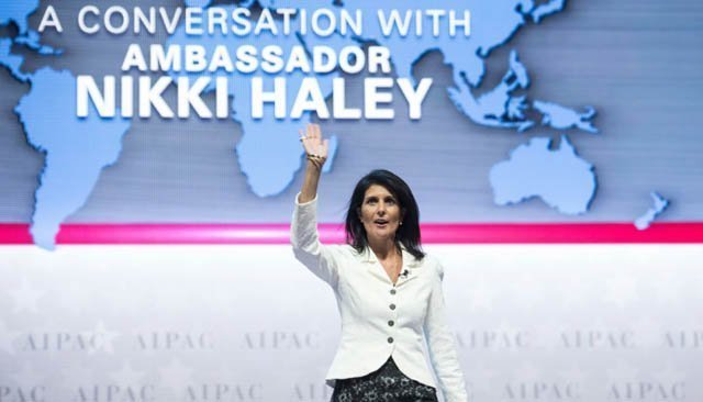 La nouvelle ambassadrice des Etats-Unis à l'ONU, Nikki Haley, a promis lundi 27 mars devant la plus grande organisation américaine pro-israélienne que le "dénigrement" de l'Etat hébreu aux Nations Unies était "terminé".