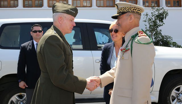 Le Général de division, inspecteur général des FAR, Abdelfatah Louarak, a reçu, jeudi 18 mai au niveau de l'Etat-major des FAR à Rabat, le Général d'armée Thomas D. Waldhauser, Commandant du commandement américain pour l'Afrique "Africom", qui effectue une visite au Royaume du 17 au 19 mai à la tête d'une délégation militaire.