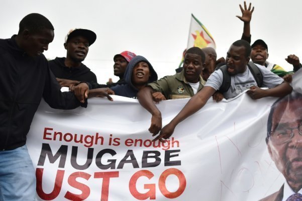 "Trop c'est trop, Mugabe doit partir', "Repose en paix Mugabe", "Non à la dynastie Mugabe", pouvait-on lire sur des pancartes brandies par des manifestants euphoriques, des Noirs mais aussi, fait rare, des Blancs.