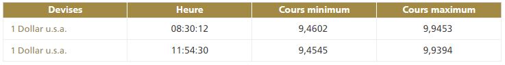 La deuxième cotation centrale USD/MAD, telle que publiée par Bank Al-Maghrib, à 11h50, fait ressortir la bande de fluctuation suivante :