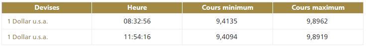 La deuxième cotation centrale USD/MAD, telle que publiée par Bank Al-Maghrib, à 11h50, fait ressortir la bande de fluctuation suivante :