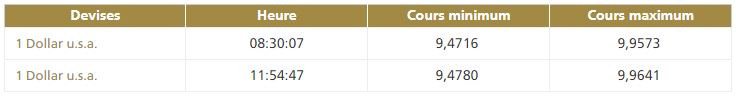 La deuxième cotation centrale USD/MAD, telle que publiée par Bank Al-Maghrib, à 11h50, fait ressortir la bande de fluctuation suivante :