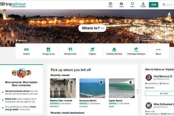 Le branding du site de voyages en ligne Tripadvisor labellise sa page d’accueil aux couleurs de la destination Maroc tout au long de la semaine du 5 août 2019.
