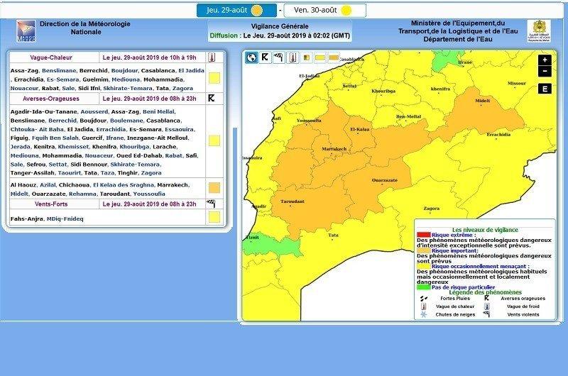 Voici la nouvelle liste de zones sous alerte orange : Al Haouz, Azilal, Chichaoua, Errachidia, Figuig, Midelt, Ouarzazate, Taroudant, Tata, Tinghir, Zagora.
