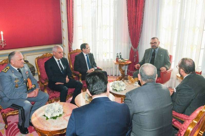 La séance de travail s'est déroulée en présence du Chef du gouvernement Saâdeddine Elotmani, du conseiller du Roi Fouad Ali Al Himma, du ministre de l'Intérieur Abdelouafi Laftit, du ministre des Affaires étrangères Nasser Bourita, du ministre de la santé Khalid Ait Taleb et du général de corps d'armée Mohamed Haramou, commandant de la gendarmerie royale.