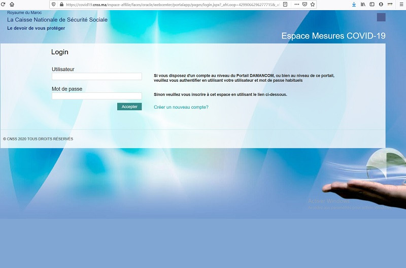 "La Caisse Nationale de Sécurité Sociale porte à la connaissance de l’ensemble des entreprises affiliées à la CNSS, que la nouvelle version du portail covid19.cnss.ma, qui tient compte des dispositions prévues par le Décret n°2-20-331, est ouvert à partir du 28 avril 2020 et ce, pour leur permettre de déclarer leurs salariés en arrêt total ou partiel de travail du fait de la pandémie Covid-19.