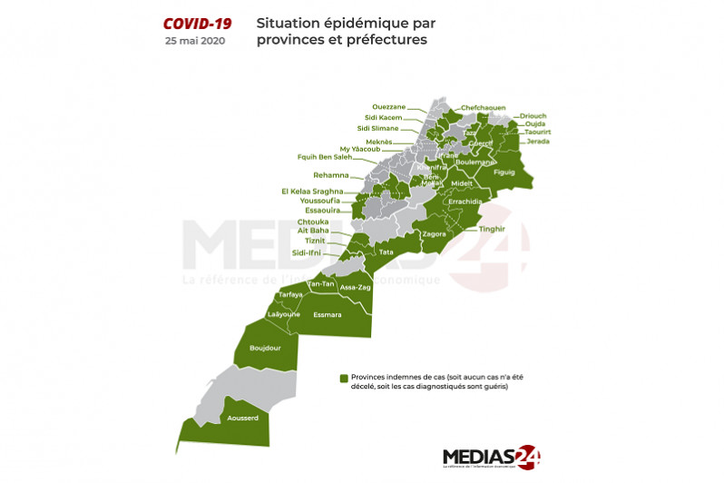Au total, 37 provinces sont vertes au lundi 25 mai à 16H.