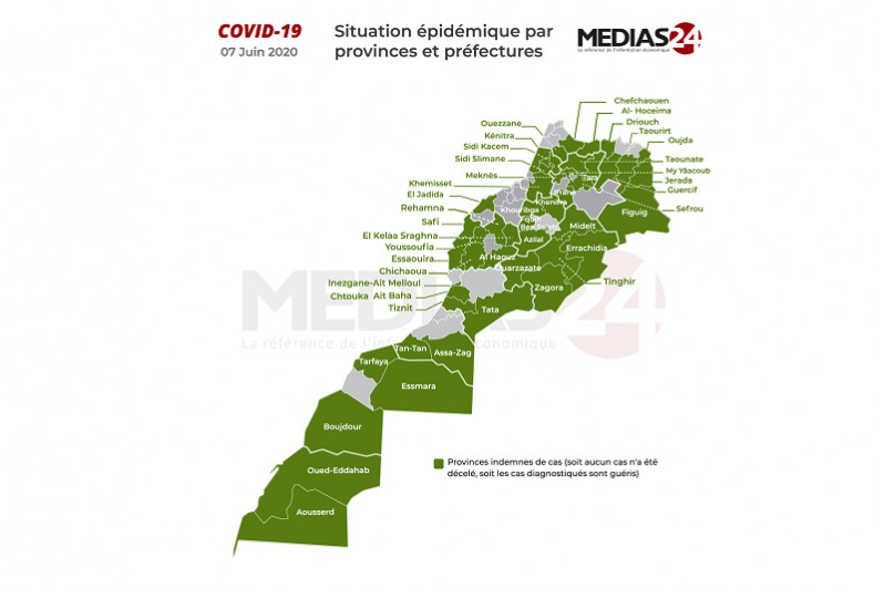 Les provinces de Moulay Yacoub, Taounate et Taourirt rejoignent les zones vertes. 47 provinces vertes sur 75. Et seulement 652 cas actifs dans tout le Maroc.