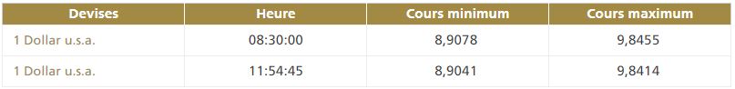 La deuxième cotation centrale USD/MAD, telle que publiée par Bank Al-Maghrib, à 11h50, fait ressortir la bande de fluctuation suivante :