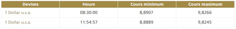 La deuxième cotation centrale USD/MAD, telle que publiée par Bank Al-Maghrib, à 11h50, fait ressortir la bande de fluctuation suivante :