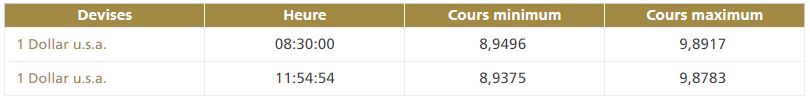 La deuxième cotation centrale USD/MAD, telle que publiée par Bank Al-Maghrib, à 11h50, fait ressortir la bande de fluctuation suivante :