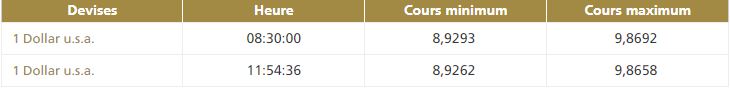 La deuxième cotation centrale USD/MAD, telle que publiée par Bank Al-Maghrib, à 11h50, fait ressortir la bande de fluctuation suivante :