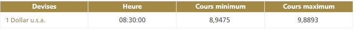 Ce mercredi 11 novembre, vers 8h30, la première cotation centrale USD/MAD de la journée, telle que publiée par Bank Al-Maghrib (BAM), fait ressortir la bande de fluctuation suivante: