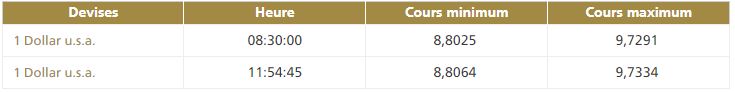 La deuxième cotation centrale USD/MAD, telle que publiée par Bank Al-Maghrib, à 11h50, fait ressortir la bande de fluctuation suivante :