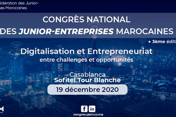 La Confédération des junior-entreprises marocaines organise la 3e édition du "Congrès national des junior-entreprises marocaines", samedi 19 décembre 2020 en format hybride.