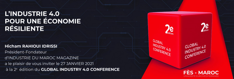 Autour du thème: "L’industrie 4.0 au service d’une économie résiliente", Industrie du Maroc organise, dans un format hybride, la 2e édition de son business forum phare "Global Industry 4.0 Conférence". Cet évènement réunira acteurs, professionnels et experts de l’industrie pour un échange d’expérience et partage des pratiques les plus récentes dans le domaine de l’industrie 4.0.