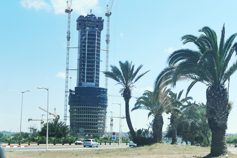 Les travaux de gros œuvres pour le socle ont atteint un taux de réalisation de 90%, alors que les travaux de la charpente métallique sont réalisés à hauteur de 50% pour la tour.