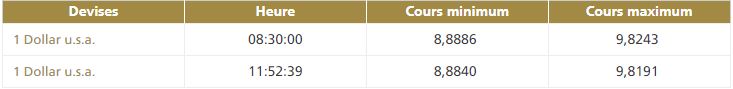 La deuxième cotation centrale USD/MAD, telle que publiée par Bank Al-Maghrib, à 11h53, fait ressortir la bande de fluctuation suivante :