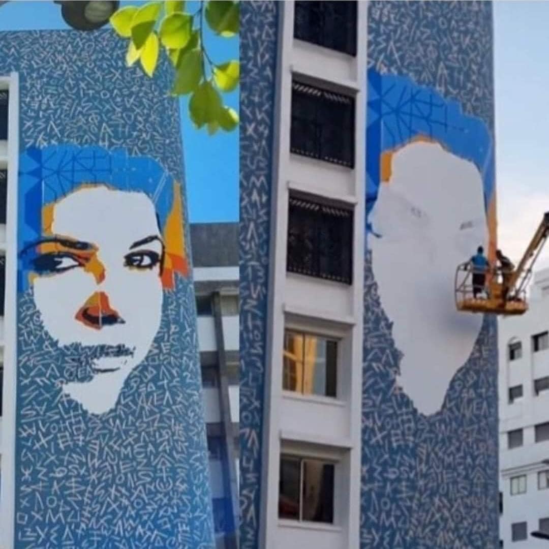 Jeudi 25 juin, Mouad avait dénoncé sur les réseaux sociaux l'interdiction de laquelle il a été sujet, après qu'il ait commencé à dessiner le portrait sur la façade du technopark de Tanger. Le portrait a, juste après, été effacé par les autorités locales.