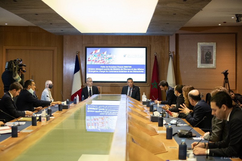 Chakib Alj a reçu, lundi 22 novembre, Franck Riester, en présence de Hélène Le Gal, ambassadrice de France au Maroc et d’opérateurs économiques des deux pays.
