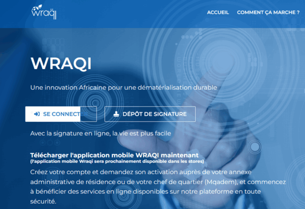 Wraqi.ma promet de faciliter les procédures administratives à travers un accès à distance aux services de légalisation, de signature et de certification de copies conformes. La plateforme est en phase pilote en attendant son déploiement au Maroc.