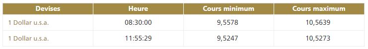 Ce mardi 24 mai, vers 8h30, la première cotation centrale USD/MAD de la journée, telle que publiée par Bank Al-Maghrib (BAM), fait ressortir la bande de fluctuation suivante: