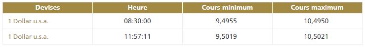 La deuxième cotation centrale USD/MAD, telle que publiée par Bank Al-Maghrib, à 11h50, fait ressortir la bande de fluctuation suivante :