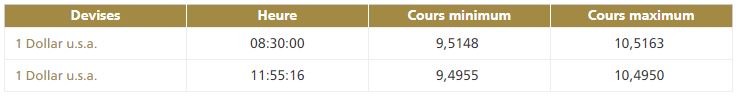 La deuxième cotation centrale USD/MAD, telle que publiée par Bank Al-Maghrib ce mercredi 8 juin, fait ressortir la bande de fluctuation suivante :