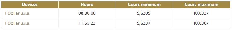 La deuxième cotation centrale USD/MAD, telle que publiée par Bank Al-Maghrib, fait ressortir la bande de fluctuation suivante :