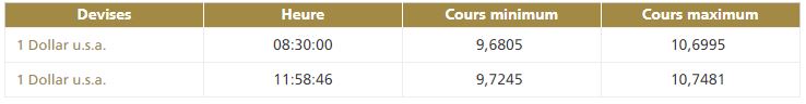 La deuxième cotation centrale USD/MAD, telle que publiée par Bank Al-Maghrib, fait ressortir la bande de fluctuation suivante :